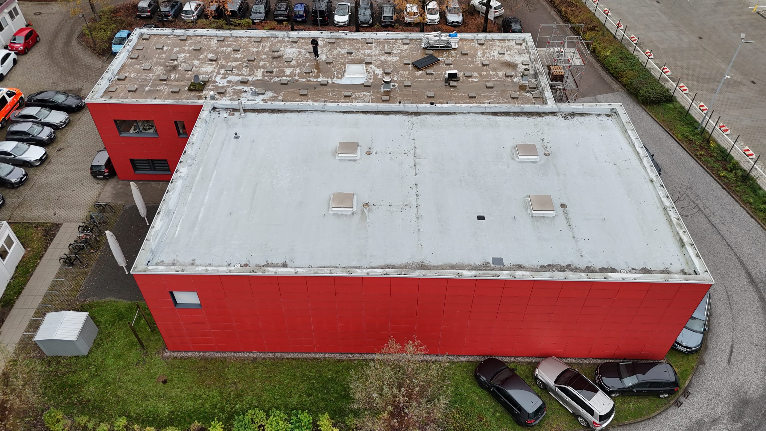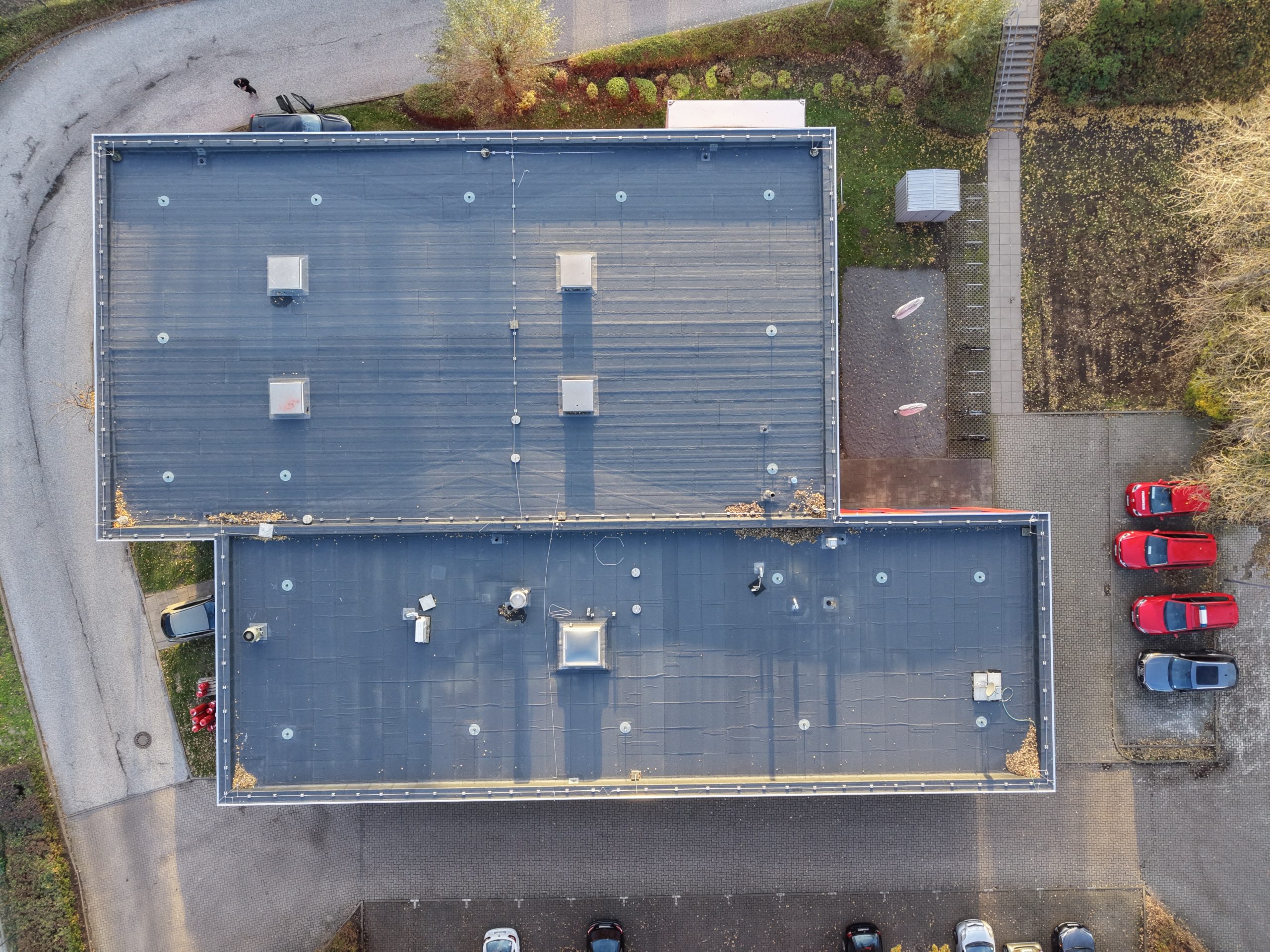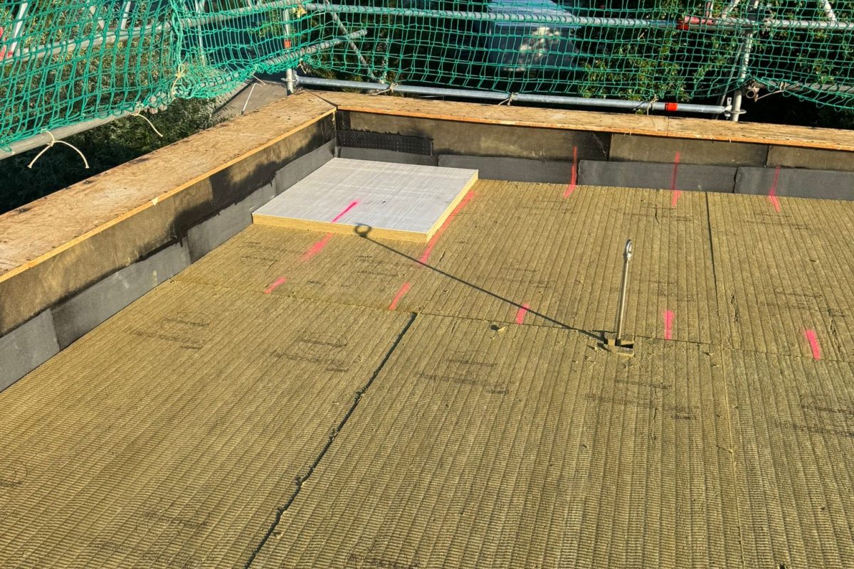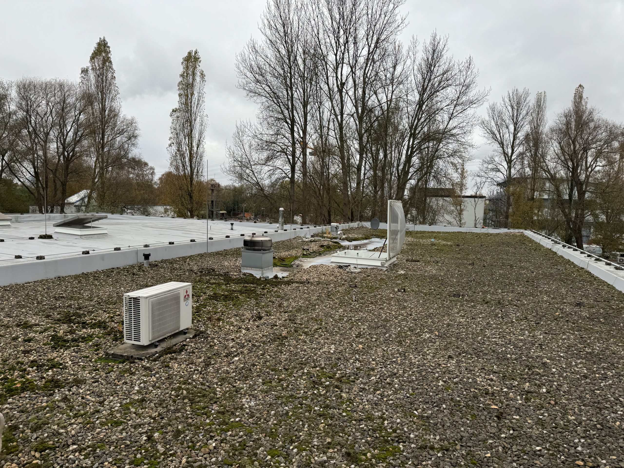 Abschließend wurde die gesamte Dachfläche dreilagig bituminös abgedichtet, sodass die Flächen nun optimal für die geplante Photovoltaik-Belegung vorbereitet sind.