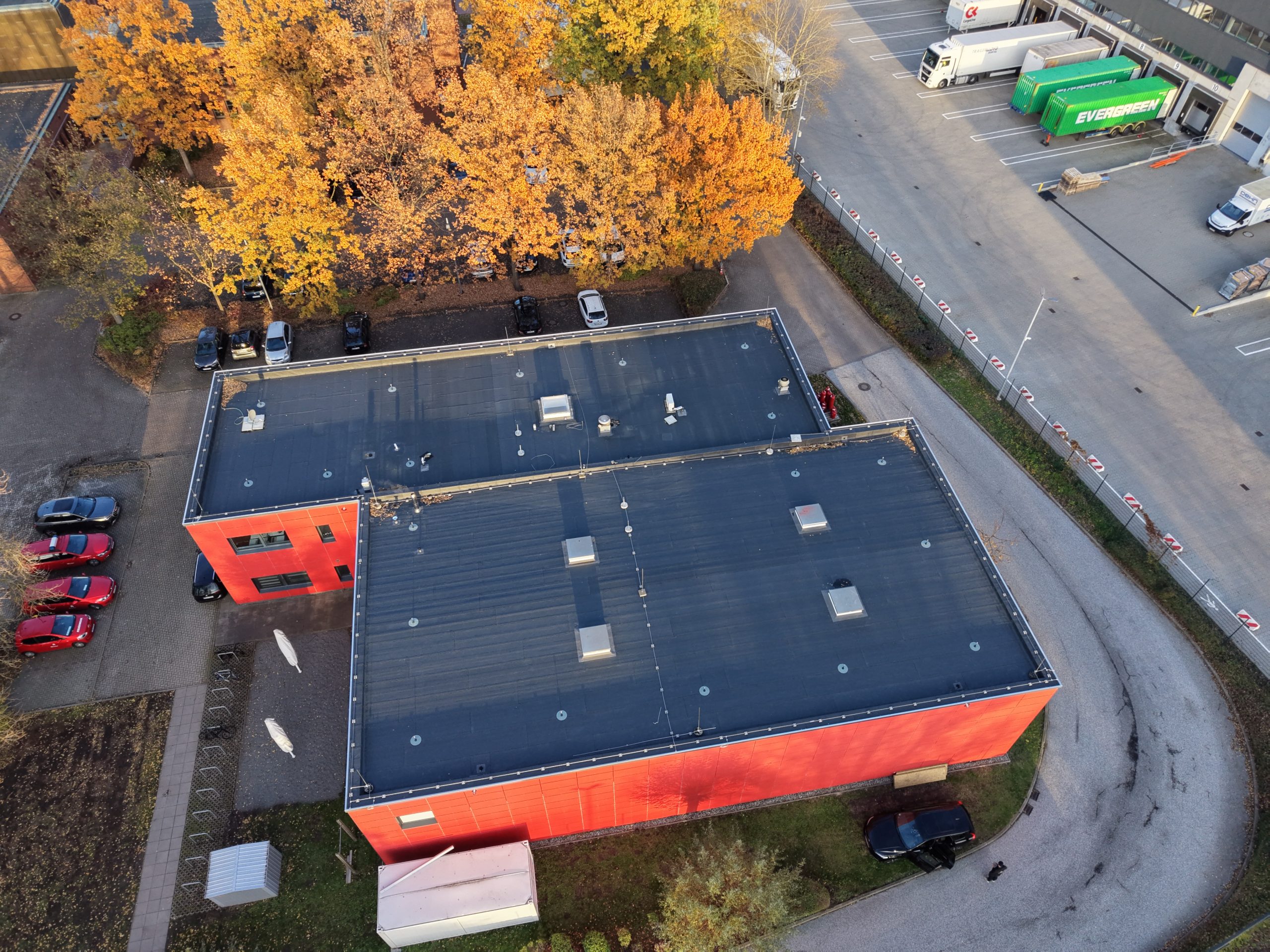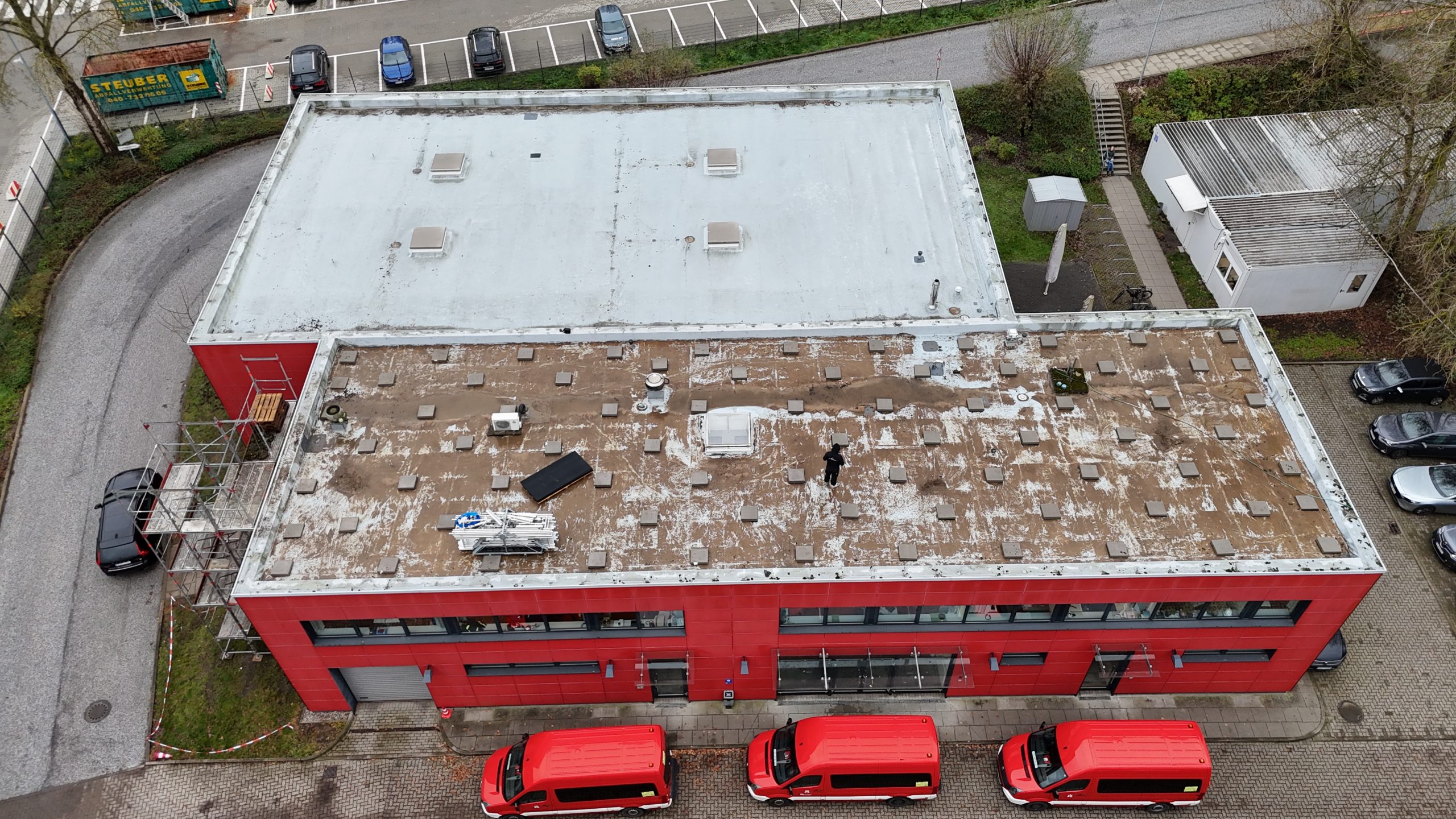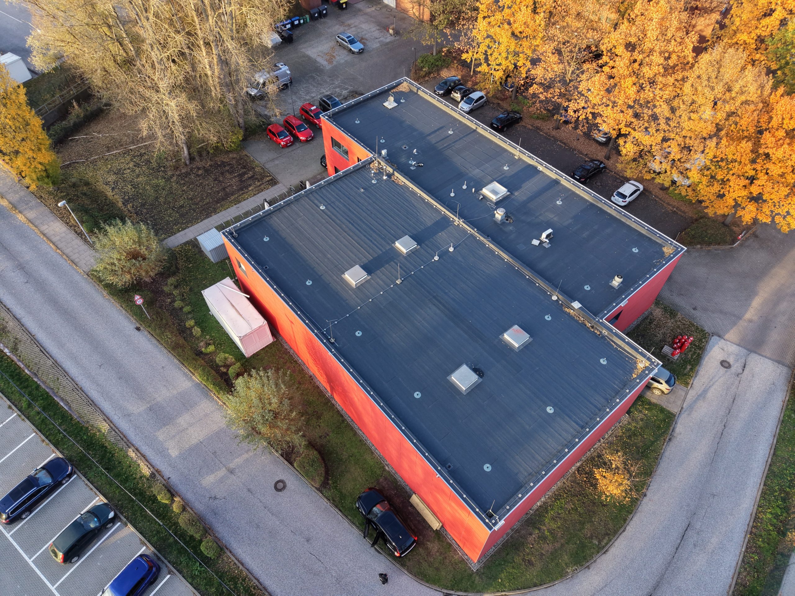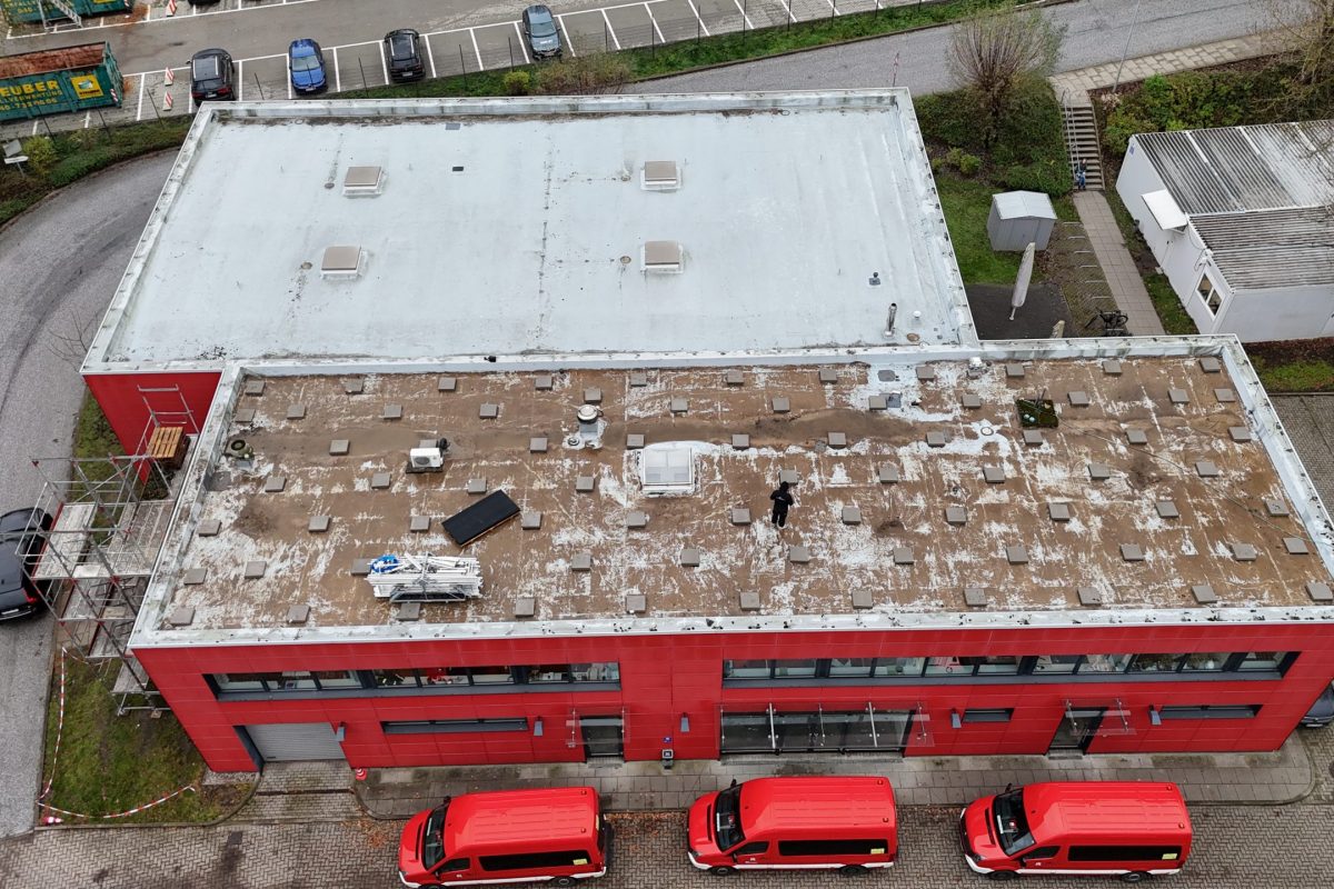 In der Bredowstraße haben wir die umfangreiche Sanierung von rund 730 m² Dachfläche der Feuerwehrschule Hamburg durchgeführt. Nach einem Wasserschaden musste die gesamte Dachfläche vollständig erneuert werden.