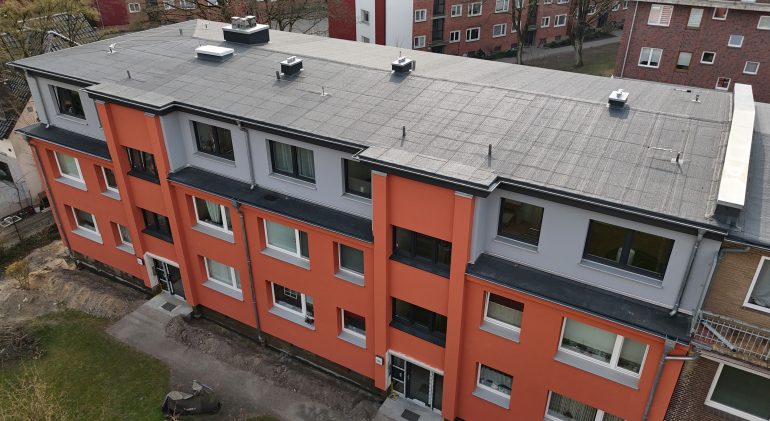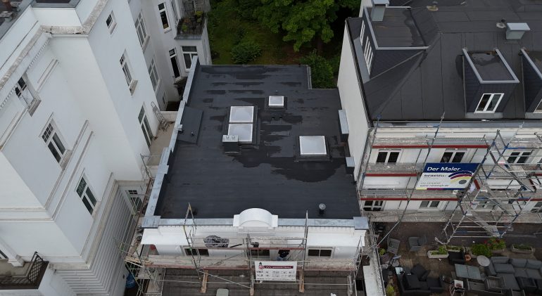 Am Objekt Mittelweg wurden wir mit der Revitalisierung der bestehenden Flachdachabdichtung beauftragt. Vorausgegangen waren wiederholte Wasserschäden, die eine dauerhafte Lösung erforderlich machten. Auf Wunsch des Kunden lag der Fokus dabei klar auf einer wirtschaftlich sinnvollen, aber dennoch langlebigen Sanierung.