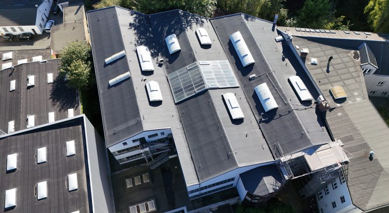 In der Bredowstraße haben wir die umfangreiche Sanierung von rund 730 m² Dachfläche der Feuerwehrschule Hamburg durchgeführt. Nach einem Wasserschaden musste die gesamte Dachfläche vollständig erneuert werden.